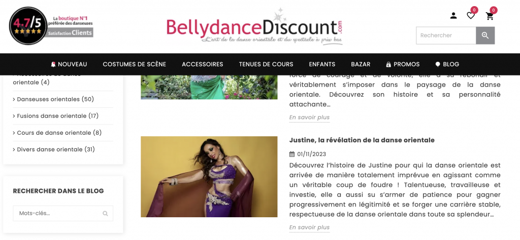 En plus de la boutique, BellyDanceDiscount.com édite également un blog avec des articles et des interviews de danseuses. Ainsi, en 2023, le site m’a contacté pour parler de mon parcours.